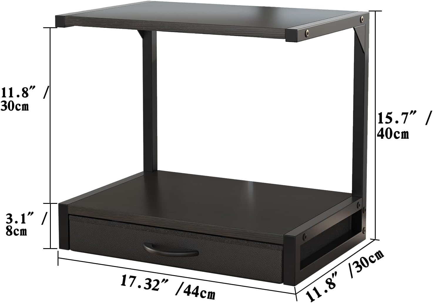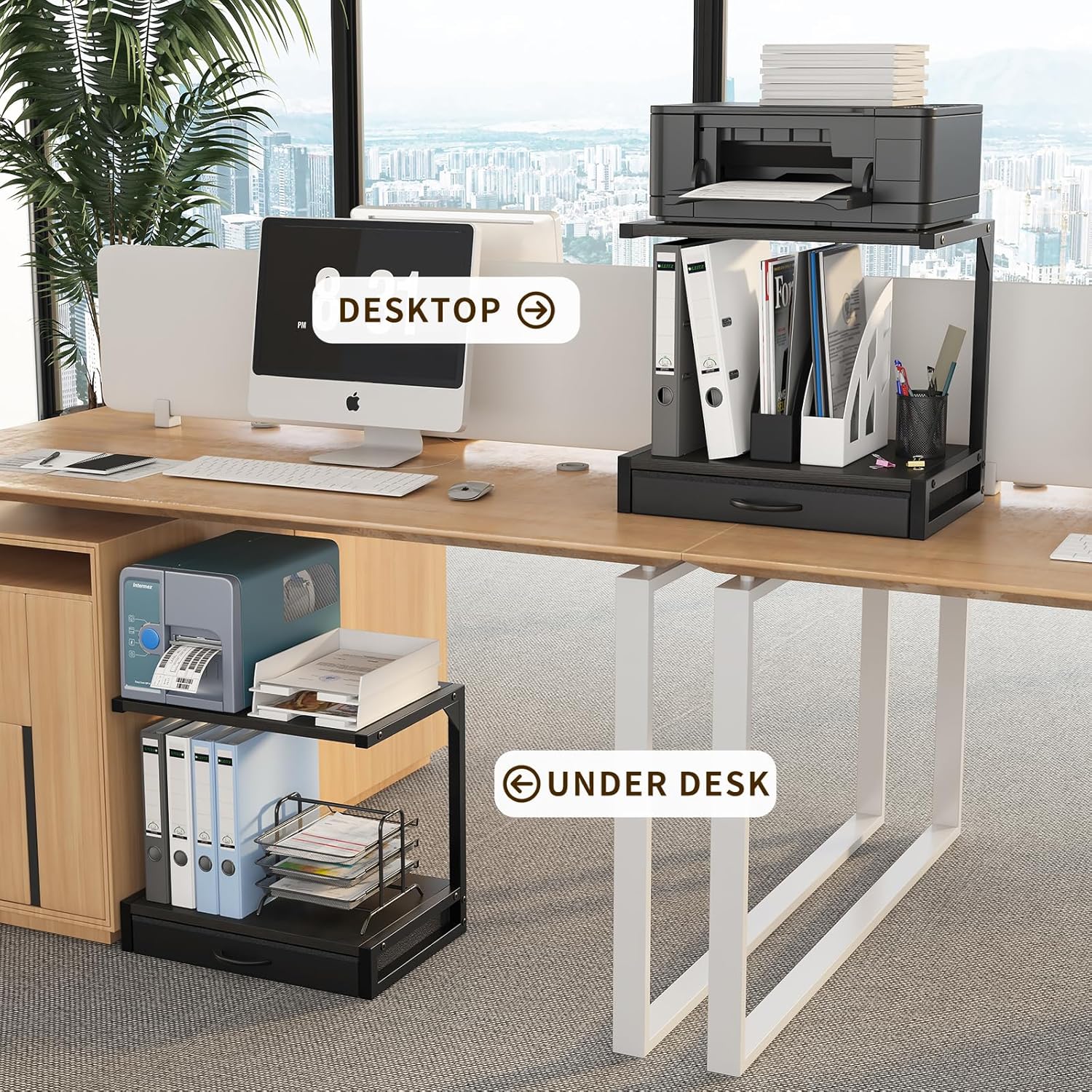 【2-Tier Desktop Printer Stand】This compact desktop printer stand measures 17.3″D x 11.8″W x 15.7″H, perfect for your printer table for home office. The two-tier printer shelf accommodates two printers, 3D printers, fax machines, or scanners, with 11.8″ middle space for optimal organization.
