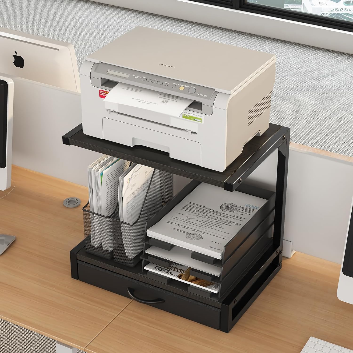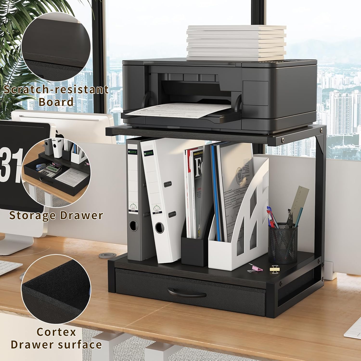 【Printer Stand with Storage】 Keep your office essentials private and clutter-free with this printer desk stand with storage. The included drawer provides a convenient space for small items, enhancing your home printer stands’ functionality and keeping your workspace tidy