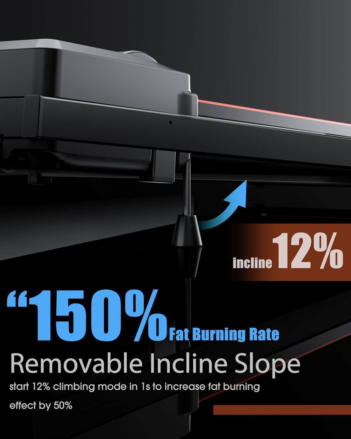 Double Fitness Effect: EVKRUN compact treadmill adopts UP to 12% removable Slope Footpad, which is safe and stable and which doubles your fitness effects such as Weight loss, strengthening muscles/bone strength, and shaping