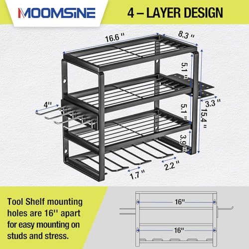 【SPECIAL GIFT】: MOOMSINE is committed to providing well-made storage racks. If you’re looking for a Father’s Day, Christmas or birthday gift, our electric tool holder is a great choice and I’m sure he’ll be happy with it.