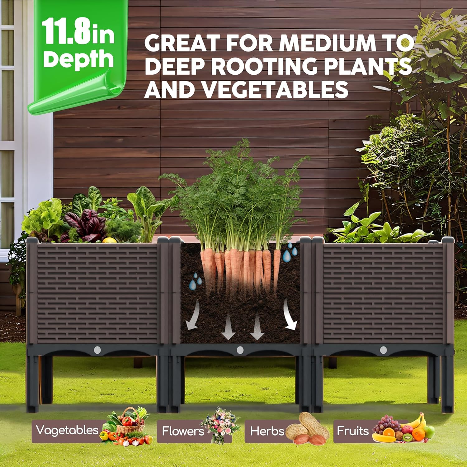 【Built-in Drainage System】: Equipped with a built-in drain outlet, the raised planter bed helps prevent waterlogging, allowing excess water to drain properly and keeping your soil in optimal condition. Perfect for maintaining plant health by preventing overwatering