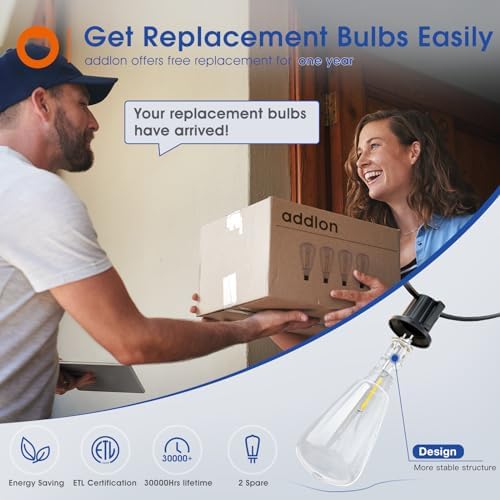 【Dimmer Compatible & Super Convenient】The 100 FT (2 Pack*50FT) outdoor led lights, Includes 30 sockets and 32 shatterproof LED bulbs (2 spare bulbs). addlon outdoor string lights compatible with most dimmers (not included) to achieve better lighting flexibility, smoothly dim from 5% to 100% to meet your various needs.The hanging lights is more than just lighting ,it’s an invitation to create your own slice of paradise, perfect for relaxing solo or sharing magical moment with those closest to you