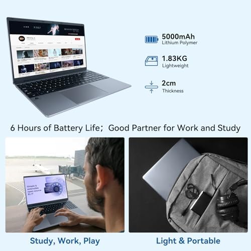 【CONVENIENT AND PORTABLE DESIGN】ANMESC laptop has an ultra-thin housing design, slim 2cm and light weight of 1.83KG, ensuring a stylish and innovative appearance, as well as excellent portability. What’s more, this business and home laptop is equipped with an advanced rechargeable 5000mAh battery that lasts up to 6 hours. Very portable for business or travel. Suitable for daily work and play, it is the first choice for business, office or students.