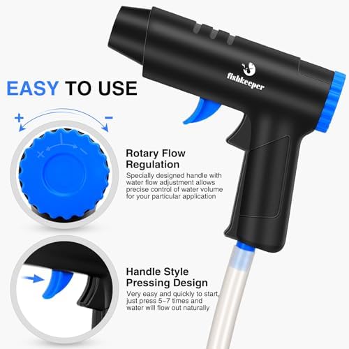 ????????ã€EASY TO USE】Air-pressing start handle design, comfortable grip for an ergonomic feel, make this aquarium vacuum gravel cleaner very easy to start, water will automatically flow out by just pulling several times. The handle features a unique flow adjustable device, giving you precise control of water flow as you work, pretty convenient & cool.