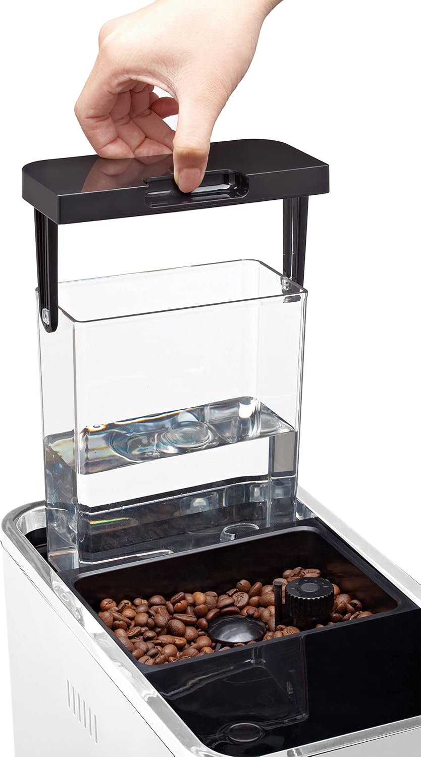 400 gram Coffee Bean container and 1.2 Liter Removable Water Reservoir with Easy Refill Access