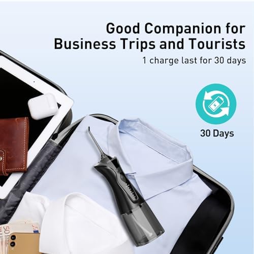 30 Days Extended Battery Life for On-the-Go Use: The portable water dental flosser features a powerful eco-friendly battery that lasts double the time of other models. With just 3 hours of charging, you can enjoy up to 30 days of use. Its compact and lightweight design makes it perfect for use at home or on-the-go, and it comes with a USB cable (adapter not included) for easy charging.Note:Only 5V/1A/2A/3A adapter is suitable, Please use the correct adapter for charging