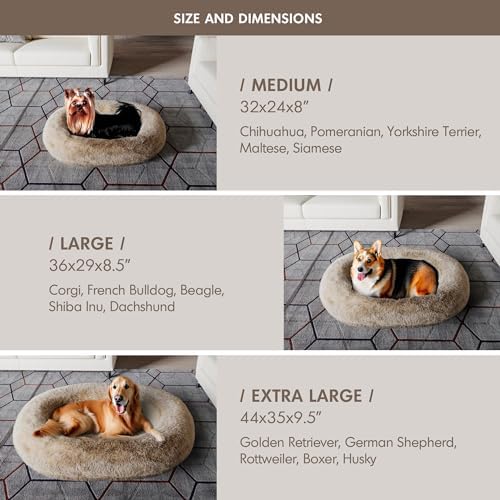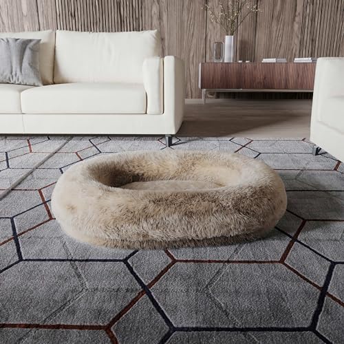 Excellent Support: This donut dog bed is perfect for pets that like to curl up. The raised edges are filled with shredded foam, which allows your pets to easily rest their heads. This is beneficial for spine and joint health. Additionally, the bed is equipped with high-density foam on the bottom, improving comfort and preventing pets from lying directly on the floor.