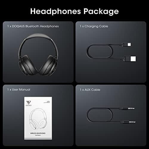 â¤ï¸ã€Excellent Service】 Package include 1 X DOQAUS LIFE 4 Over-Ear Bluetooth Headphones, 1 X AUX Cable, 1 X Charging Cable, 1 X User Manual. For more information about DOQAUS Headphones Wireless Bluetooth, please feel free to contact customer service, all of the E-mail will be processed within 24 hours.