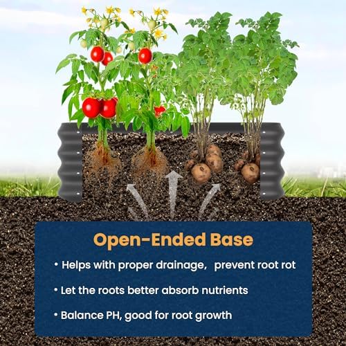ã€Open Bottom Design】This raised garden bed has an open base with good drainage, which effectively protects the roots from water accumulation, allowing the roots to absorb nutrients better.