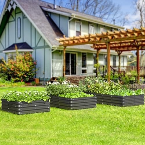 ã€Great Size for You】The planter box measures 3x3x1 FT/33.8×33.8×12 inch. Great size for growing in a patio, garden or anywhere you want to. It provides space for planting vegetables, fruits, flowers, herbs and other plants. The square shape makes your garden looks tidier.