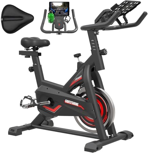 GOFLYSHINE Exercise Bikes Stationary, Indoor Cycling Bike for Home Cardio Gym,Workout Bike with Saddle Cover, Ipad Mount & LCD Monitor,Silent Belt Drive