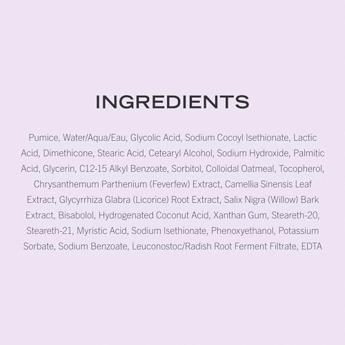 Buff Away Dead Skin: Glycolic and Lactic Acids at a combined level of 10% help loosen skin’s top layer and decongest pores, while Pumice Buffing Beads (NOT microplastic!) whisk it all away