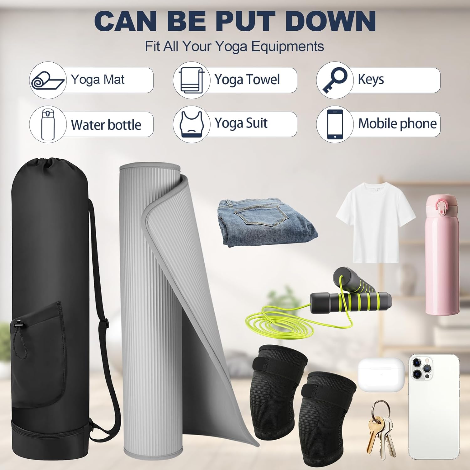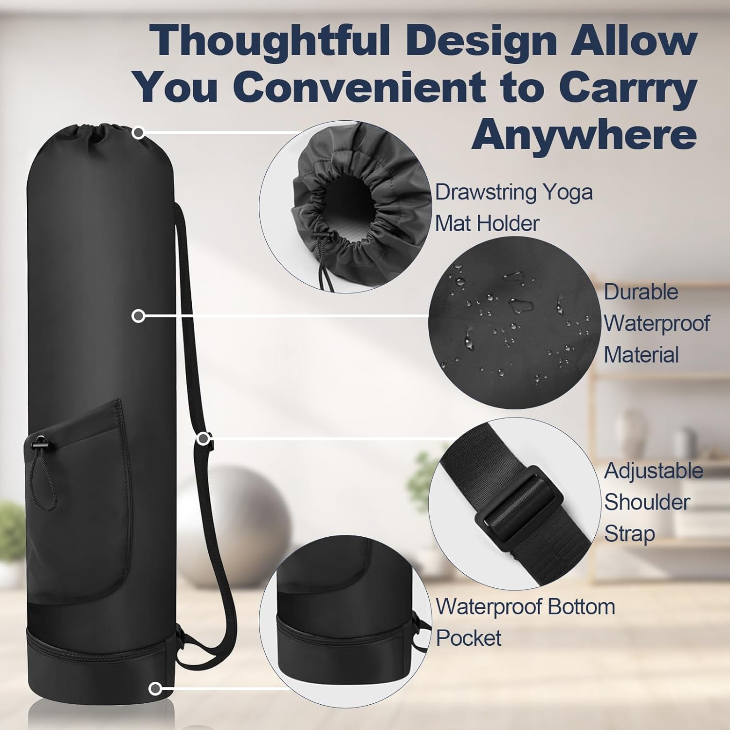 【Spacious & Universal Fit】Measuring 7.5 x 7.5 x 30.7 inches, the bag fits most standard yoga mats. Roomy yet compact, it ensures a snug fit without bulk. Note: Mat not included. Designed for hassle-free storage and transport wherever you go.
