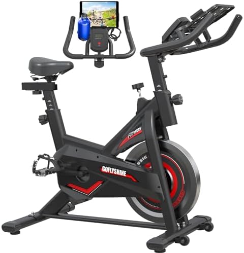 GOFLYSHINE Exercise Bikes Stationary,Exercise Bike for Home Indoor Cycling Bike for Home Cardio Gym,Workout Bike with Ipad Mount & LCD Monitor,Silent Belt Drive