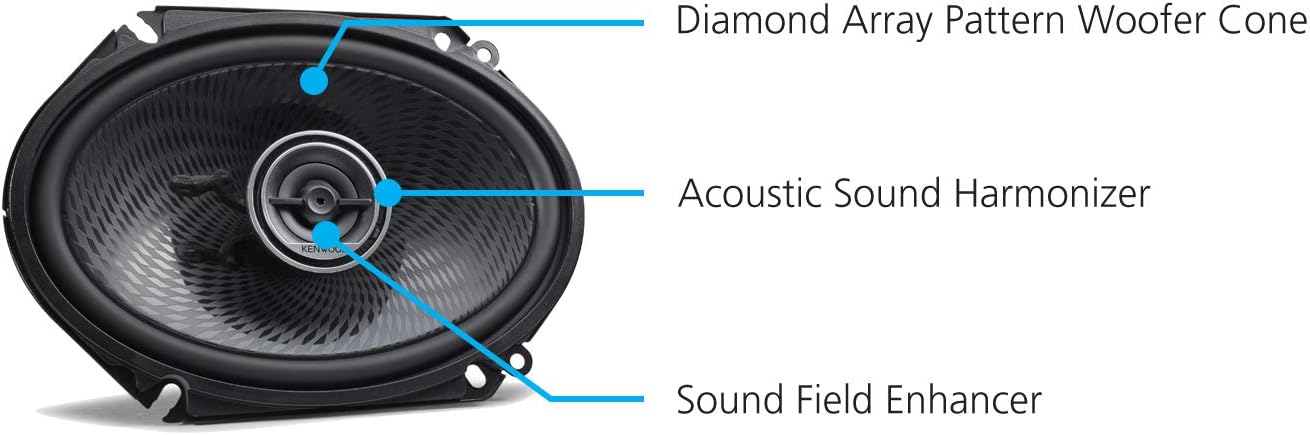 KFC-6896PS 6″x8″ speakers rock a polypropylene cone with a diamond array pattern, which minimizes distortion, while a rubber surround ensures overall durability. All the musical details are handled by the balanced dome tweeter, and dispersion is improved by Kenwood’s proprietary Sound Field Enhancer.