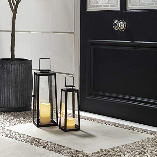 Lights4fun, Inc. Set of 2 Black Metal Battery Operated 15″ & 12″ Tall LED Flameless Candle Lanterns Lights for Indoor Outdoor Use