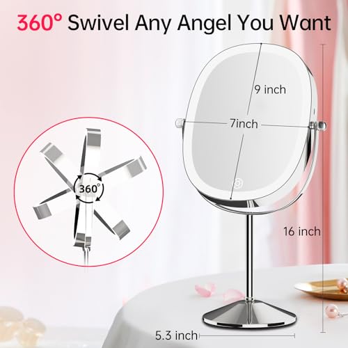 【1X/7X Magnifying Mirror HD】:This double-sided led mirror makeup makes it easier to get the perfect makeup look, 1X for daily use and hair styling, 7X magnifying mirror for detailed makeup, contact lens wear, skin care, shaving and applying mascara. Enjoy detailed makeup and skin care! Warm tips: when using the 7X magnifying makeup mirror, please keep your face 4 inches away from the mirror to avoid dizziness.