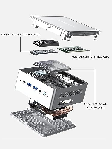 ã€Flexible upgrade】Mini Pc NAB6 Lite is equipped with 32GB DDR4 dual-channel memory (each replaceable with 32GB), M.2 2280 512GB PCIe4.0 SSD storage (up to 2TB).The pop-up design allows you to easily upgrade your configuration.