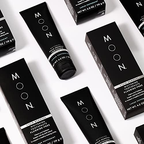 MOON Stain Removal Whitening Toothpaste, Fluoride-Free, Lunar Peppermint Flavor for Fresh Breath, for Adults 4.2 oz