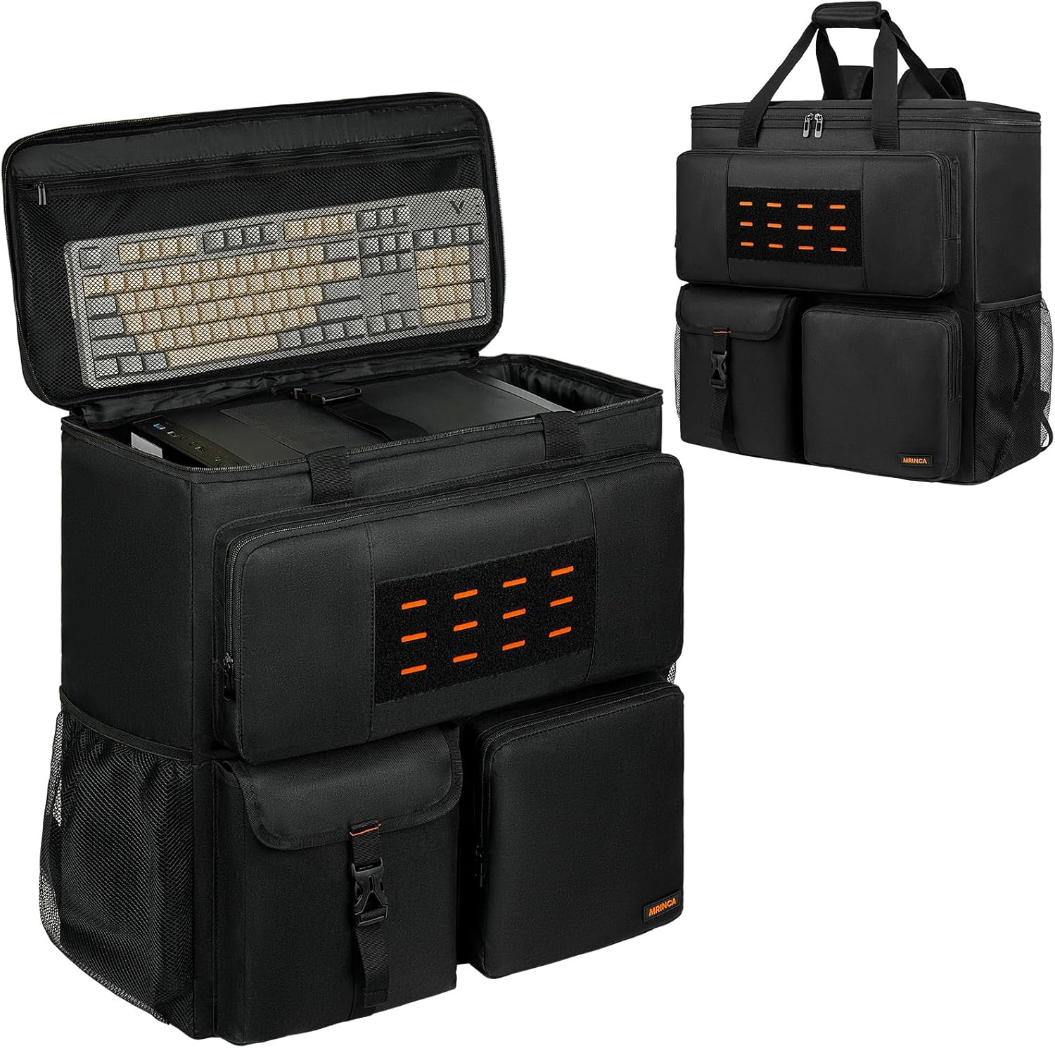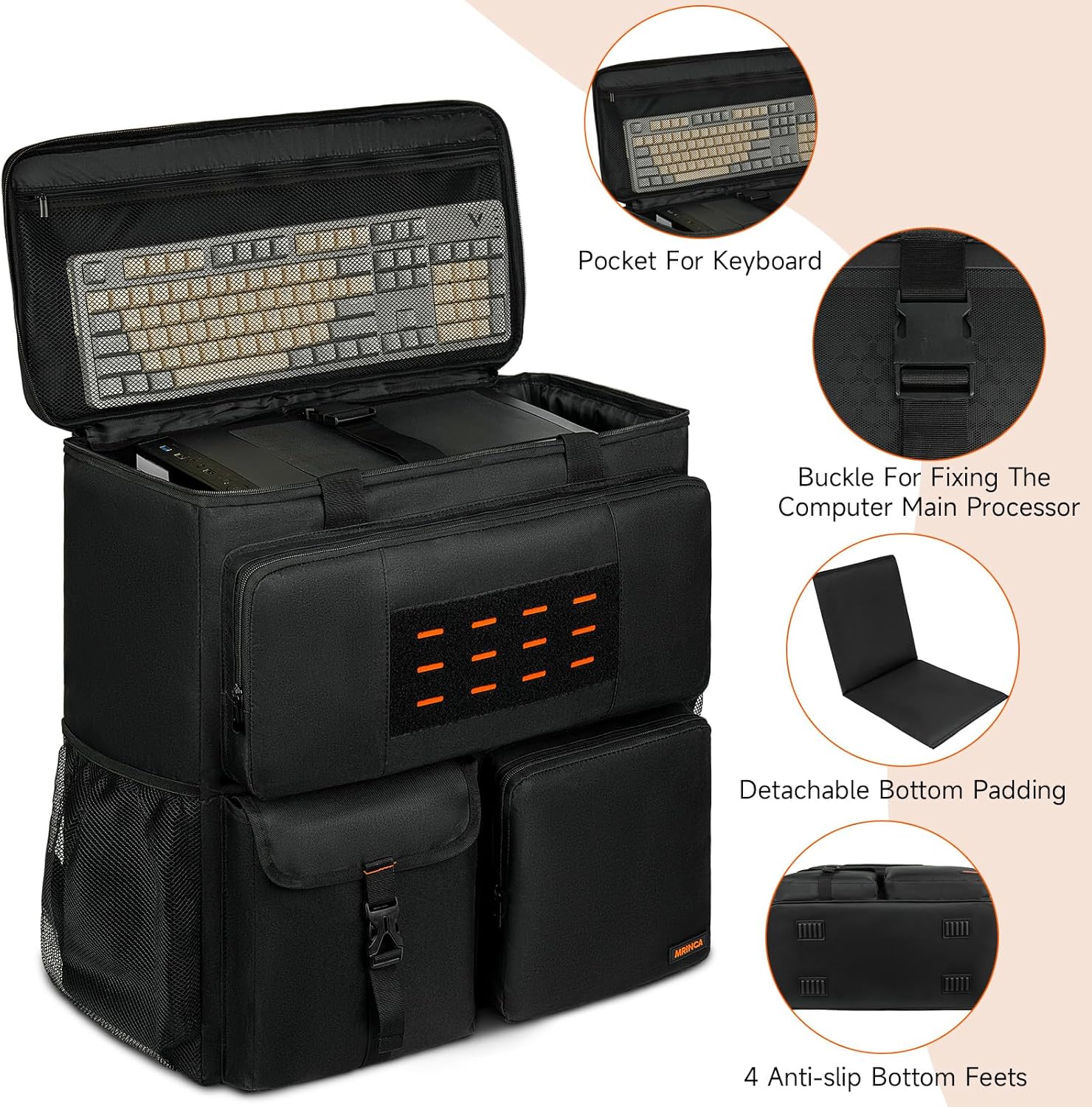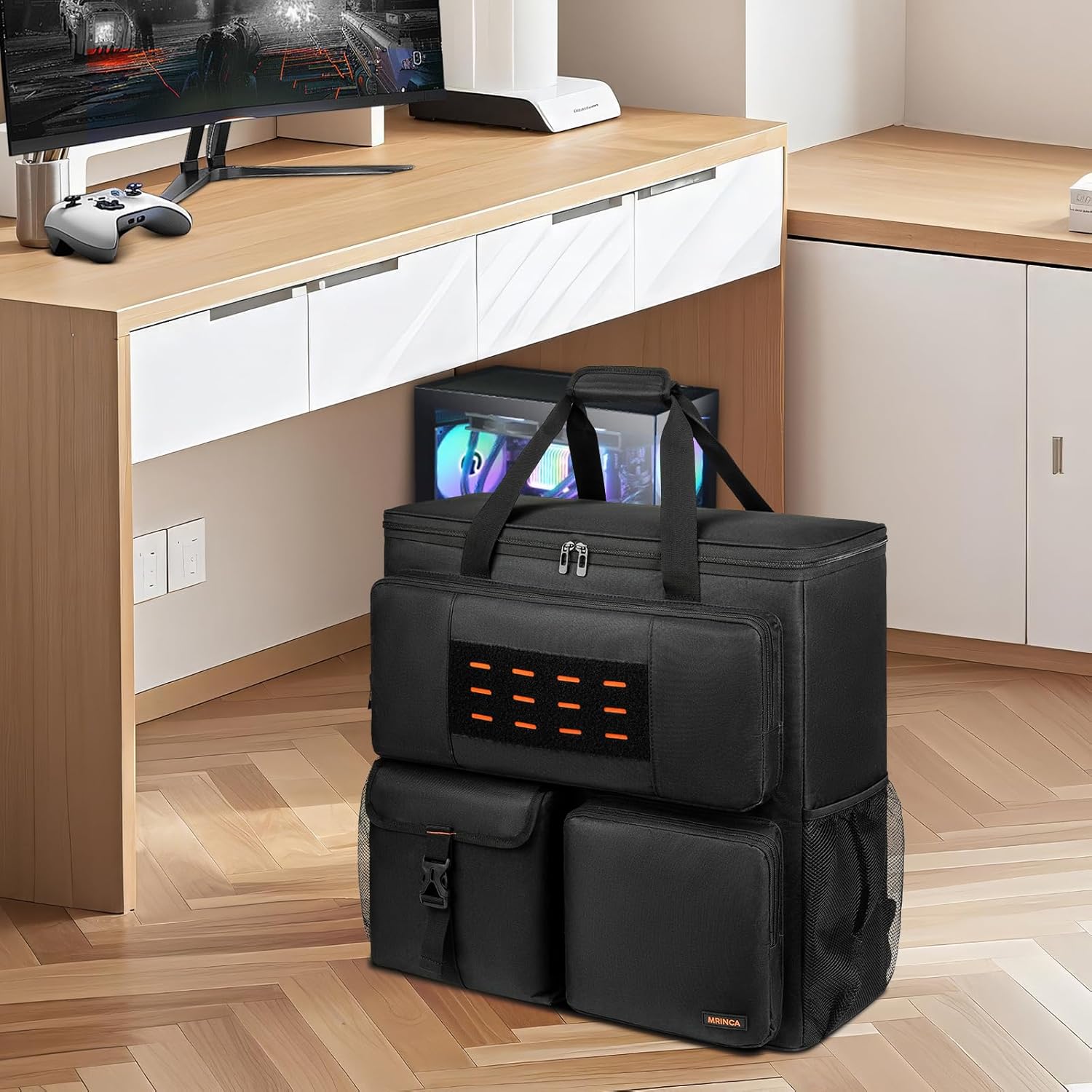 PC Carrying Case, Desktop Computer Tower Travel Bag for Gaming Equipment – Fits Upright Host, Keyboard, Mouse, Headset & Cables with Anti-Tipping Design
