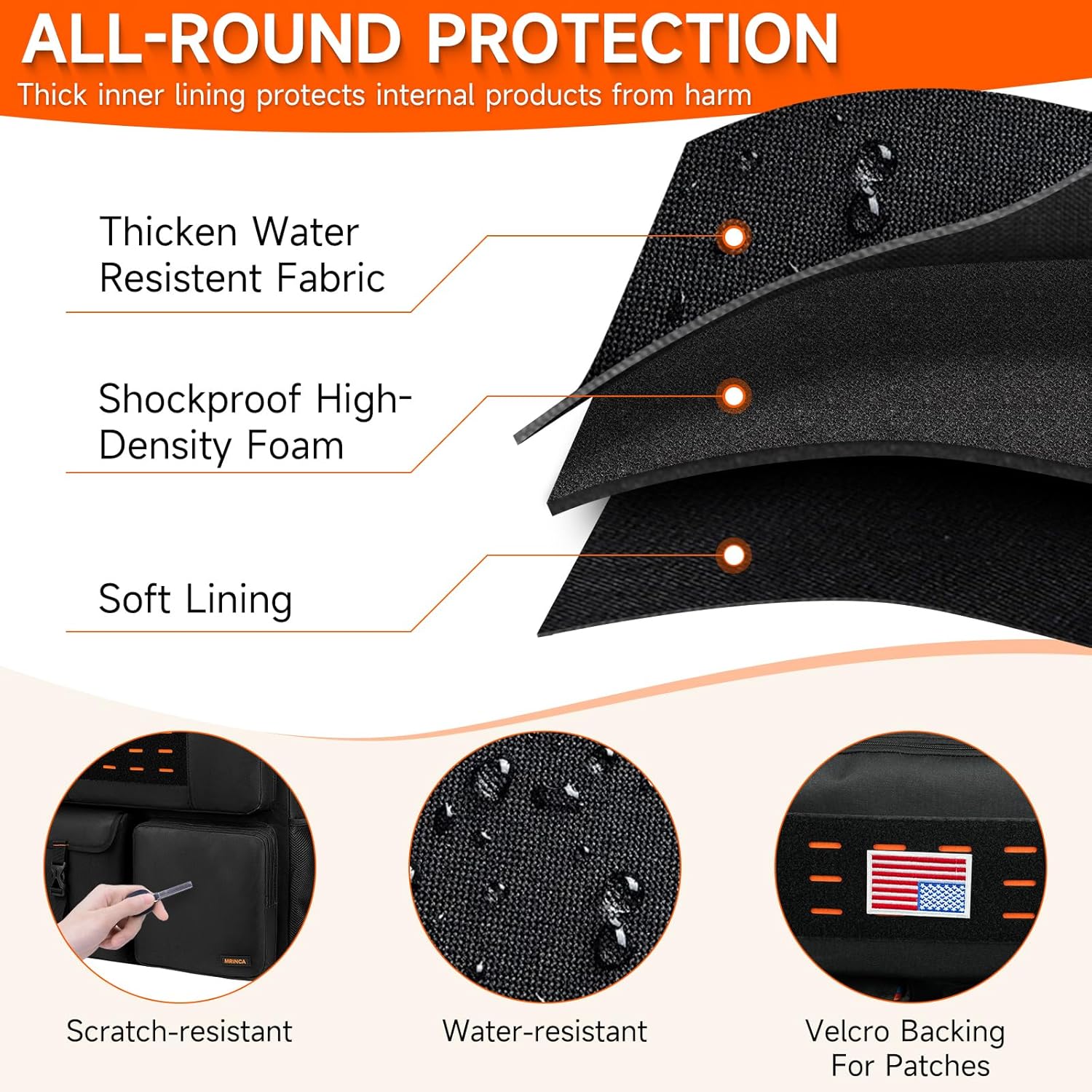 Organized Gaming Equipment Storage : Efficiently stores keyboards, mice, headsets, cables, and hard drives. Two elastic side pockets expand for large accessories or bottles. Padded compartments prevent collisions between items, functioning as a secure computer accessories carrying case