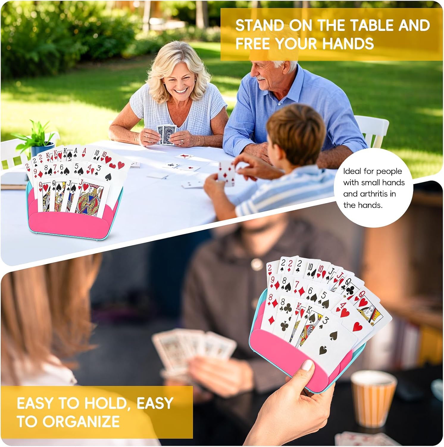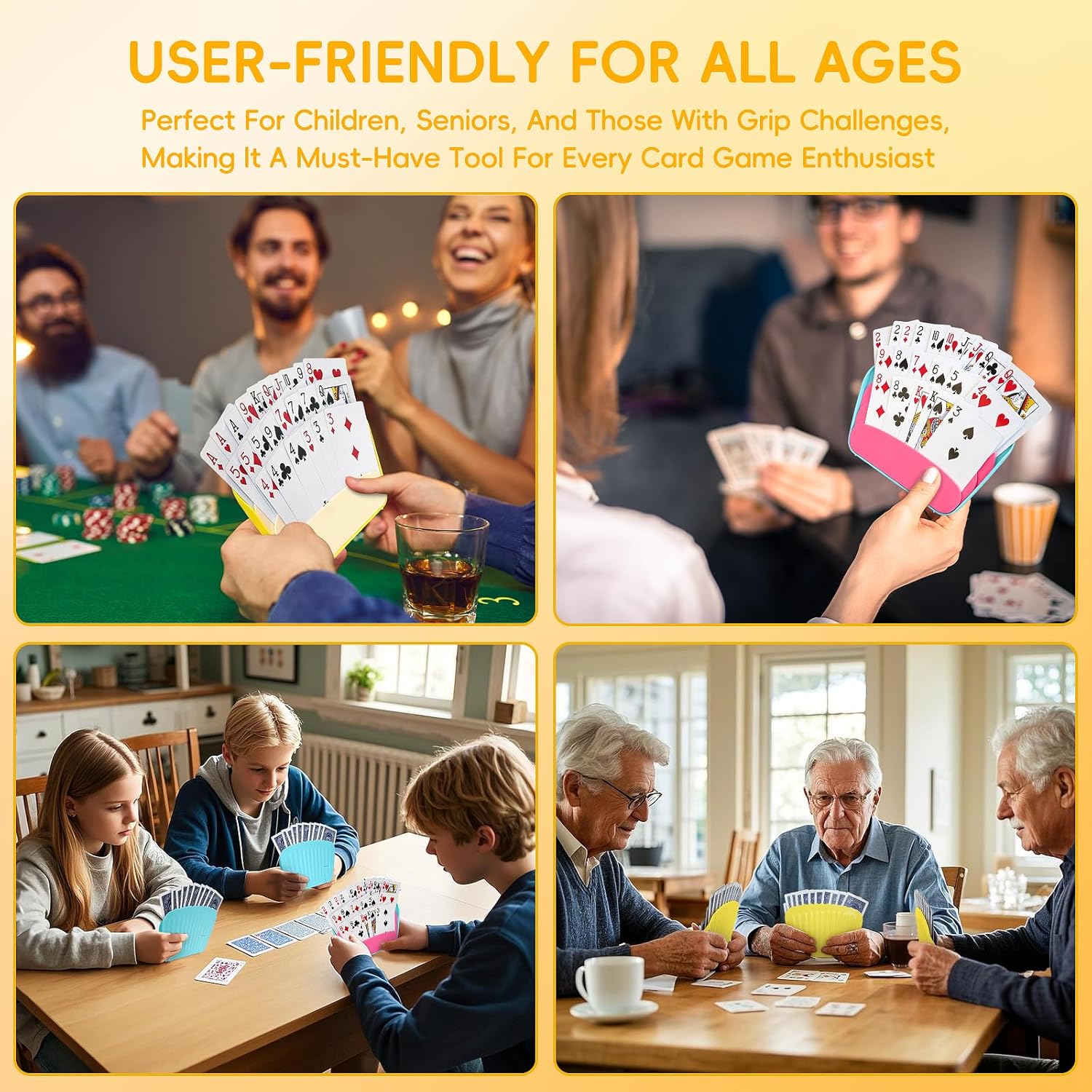 Suitable for All Audiences: Designed for little hands, seniors, and individuals with arthritis, this stand is easy to use for everyone, making it a must-have accessory for any card game enthusiast. It is a great present for these people to aid them holding their cards.