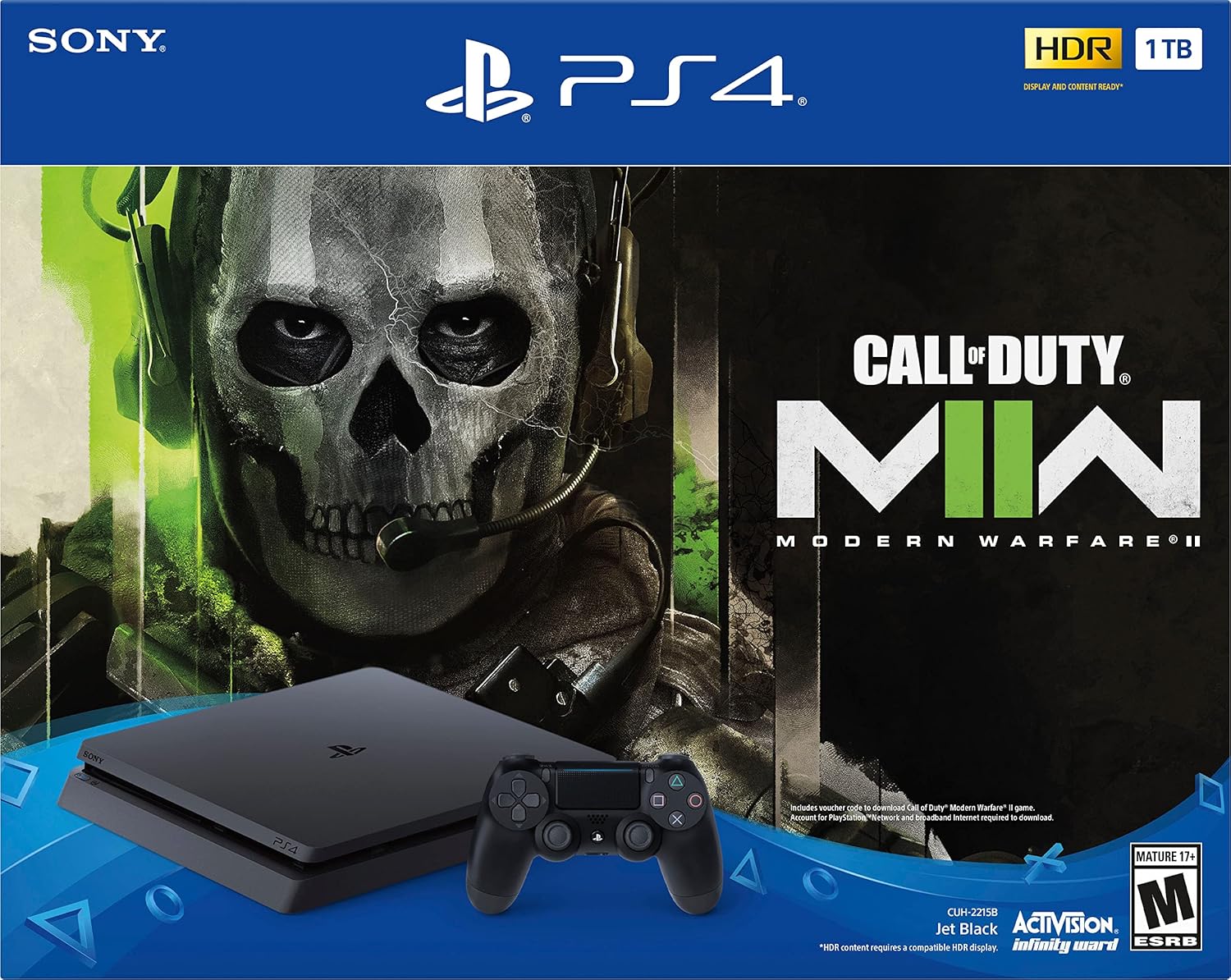 What’s in the Box Bundle includes: PlayStation4 1TB console (Model # CUH-2215B) DUALSHOCK4 Wireless Controller HDMI cable AC power cord USB cable Printed materials Call of Duty: Modern Warfare II – full game voucher PlayStation Network account and internet required to redeem voucher.