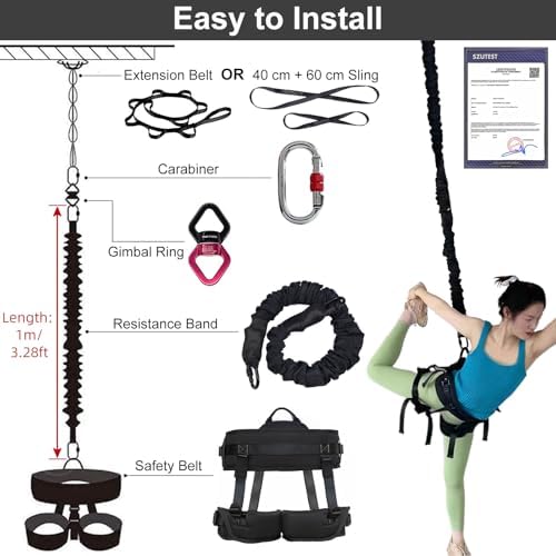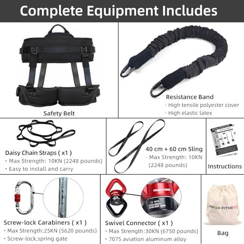 ????????ã€WHAT YOU GET】Each bungee workout equipment set comes with everything you need to get started with your bungee fitness routine, including 1*Swivel, 1*Carabiner, 1*Harness, 1*Bungee cord, 2*sling(40cm & 60cm), 1*1.1m Daisy Chain
