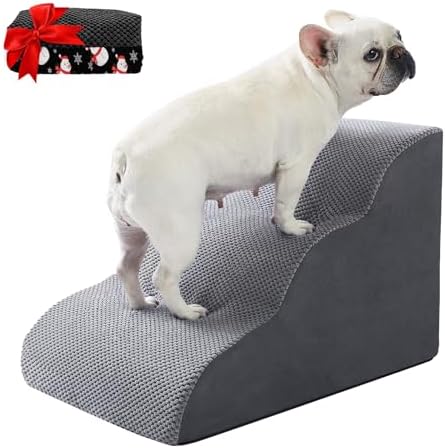 SAFETY & STURDY DOG STAIRS: Dog ramps for small dogs are constructed from high-density 30D foam, which has good recovery and is not easy to deform and collapse, providing excellent support for dogs and cats, safeguarding their joints, and offering maximum climbing comfort. The dog steps feature a non-slip bottom and lightweight sponge material, ensuring a safe climbing experience for pups, older dogs, or injublack cats, whether indoors or outdoors