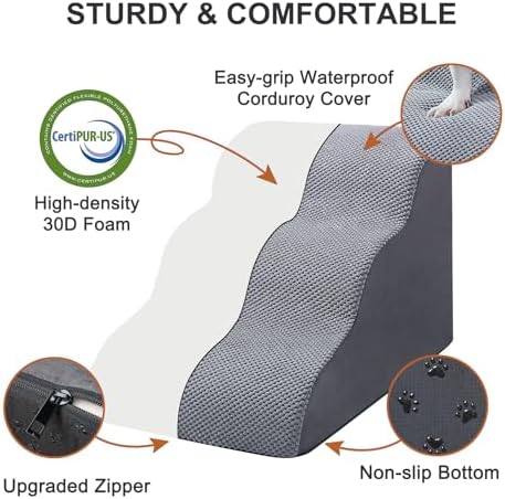 VALUE-FOR-MONEY PACKAGE: When you order our dog stairs, you’ll receive a grey replacement corduroy cover. If you have any questions or concerns after receiving your pet stairs, please don’t hesitate to reach out to us. Our customer support is available 24/7. If you’re not completely satisfied, we offer return and exchange