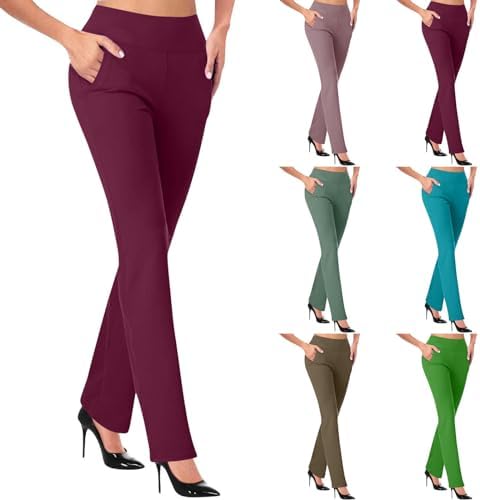 SHAOBGE Women’s Yoga Dress Pants 2024 Tummy Control Workout Bootleg Leggings Stretchy Office Casual Pants with Pockets