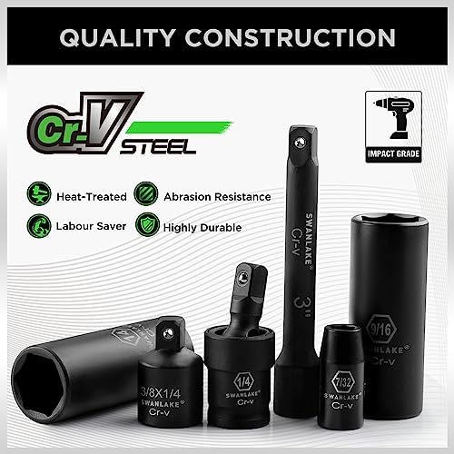 Product specification includes 1/4-Inch Drive Ratchet Handle, 3″ and 8″ drive impact extension bar, 1/4″ universal joint, 3/8″ to 1/4″ reducer and the following socket sizes: SAE, Deep: 5/32, 3/16, 7/32, 1/4, 9/16, 9/32, 5/16, 11/32, 3/8, 7/16, 1/2, 9/16 (inches), Shallow: 5/32, 3/16, 7/32, 1/4, 9/16, 9/32, 5/16, 11/32, 3/8, 7/16, 1/2, 9/16 (inches) ,Metric Sizes: Deep: 4, 4.5, 5, 5.5, 6, 7, 8, 9, 10, 11, 12, 13,14,15mm, Shallow: 4, 4.5, 5, 5.5, 6, 7, 8, 9, 10, 11, 12, 13,14,15mm