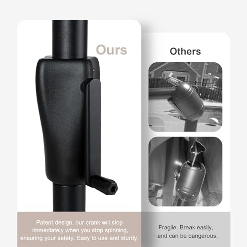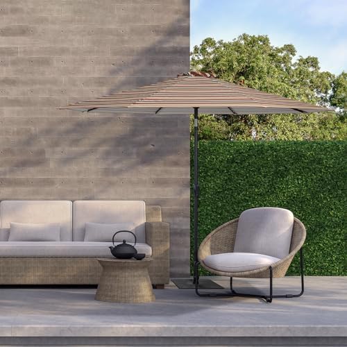 Tempera Striped Patio Umbrellas Outdoor Table Market Umbrellas with Crank & Pust Button Tilt|Auto-Tilt, 8 Steel Ribs, High Color-Fastness Canopy