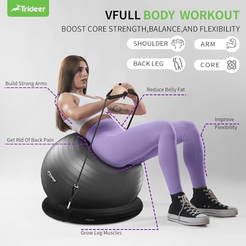 Trideer Ball Chair Yoga Ball Chair Exercise Ball Chair with Base & Bands for Home Gym Workout Ball for Abs, Stability Ball & Fitness Ball Seat to Relieve Back Pain