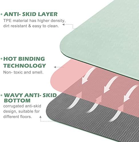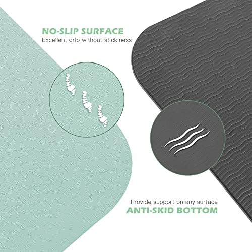 DOUBLE NON-SLIP DESIGN – This workout mat has double-sided non-slip surfaces. Wavy undersides make excellent traction on the floor. It unrolls pretty flat and stays put. Special textured surface prevents your hands and feet from sliding when you sweat on it.
