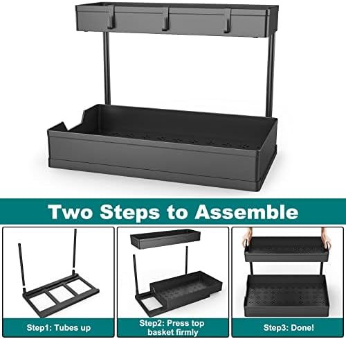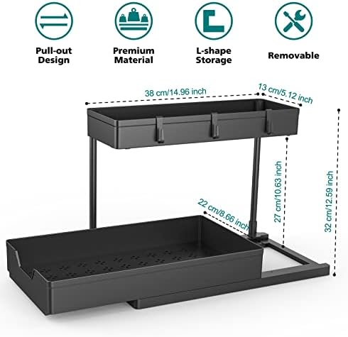 Under Sink Organizers, 2 Pack Sliding L-shape Cabinet Organizers Narrow Space Storage Multi-purpose Sink Organizer for Bathroom Kitchen Drawer (Black, 2 pack)