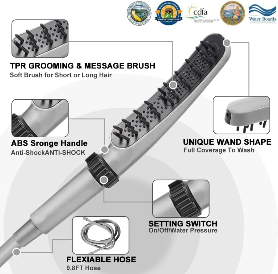 ????【High Quality】:This softest TPR hair brush is skin-friendly to your pets skin and the handle is made of ABS which is light and convenient for us to control long time, pet bath sprayer attachment is not like metal pet shower head hose that your hand will be weakness if you hold too long.