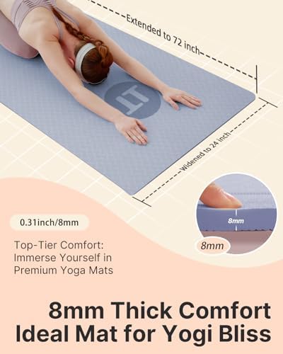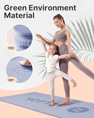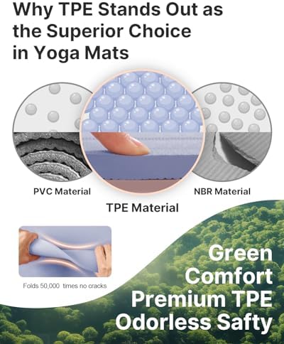 Eco-Friendly Exercise Mats: Strictly selected TPE environmental protection material, SGS & TUV double certification, our Professional TPE yoga mats are non-toxic and odorless, polymer material waterproof and sweat-proof, and prevent hand-slip, and easy to clean, They are truly eco-friendly, healthy and recyclable.