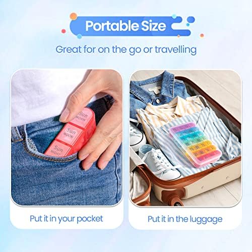 [Track with Ease] The 7 day pill case with transparent inner pill box and outer cover, you could track your medication visually. With the eye-catching bright color, our weekly medicine container 4 times a day will remind you of taking your vitamins, supplements or other medicine.