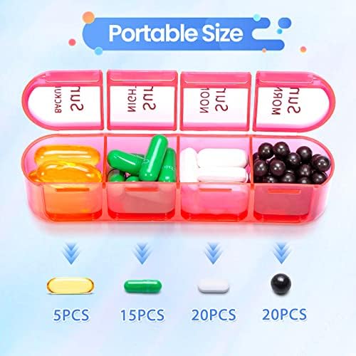 [Easy to Carry] The travel pill box 4 times a day can remove Individually, you can take 1 day pill case for purse or bag with you. The weekly pill organizer 4 times a day is compact and suitable for on the go trip, taking up little space, suitable in your suitcase.