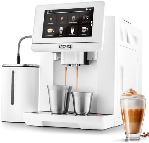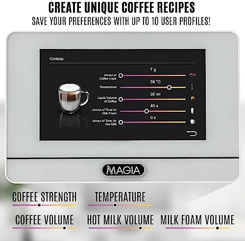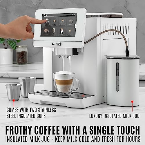 Zulay Kitchen Magia Super Automatic Espresso Machine with Grinder – Espresso Maker with Milk Frother & Insulated Milk Container- Cappuccino & Latte Machine – Touch Screen, 19 Recipes, 10 Profiles